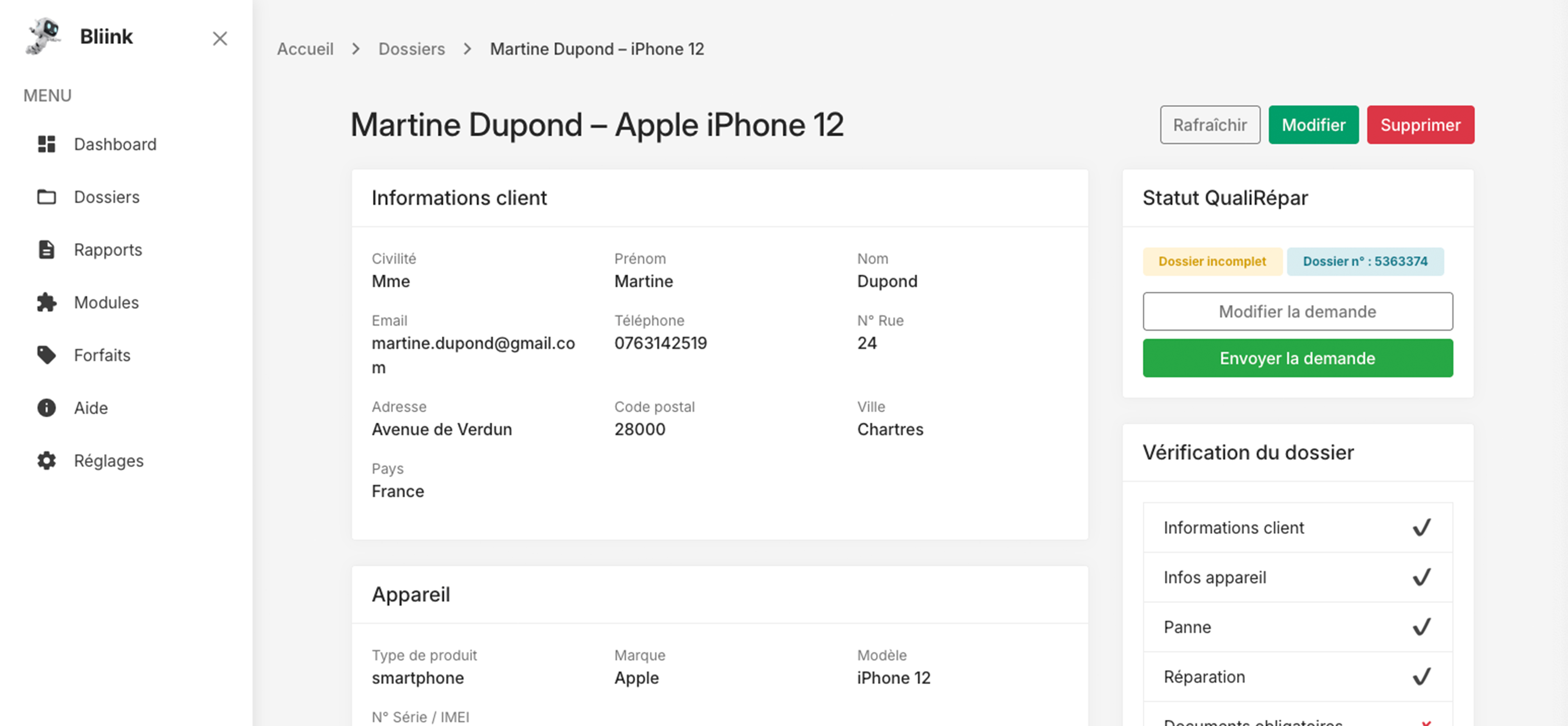 Générez, suivez et envoyez vos demandes de remboursement du bonus réparation en quelques clics. Bliink automatise votre conformité, réduit les erreurs et accélère vos remboursements.